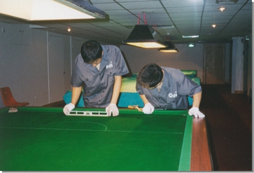 派往日本的臺球桌安裝工人以精湛的技術(shù)為客戶服務。