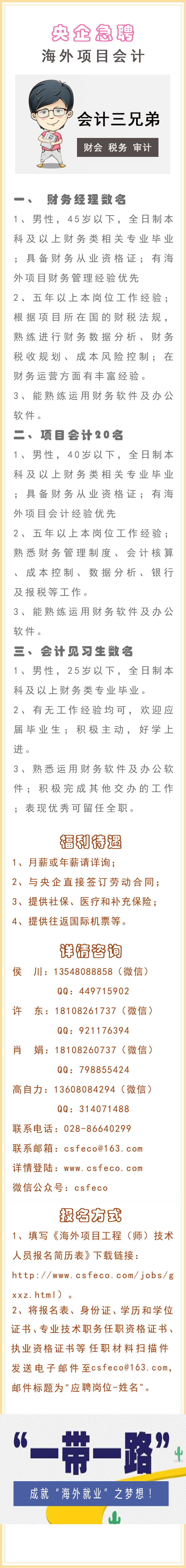 海外央企急聘海外項目會計30人