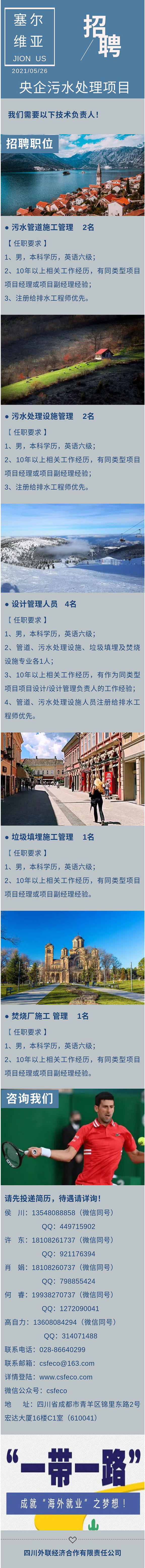 歐洲塞爾維亞央企塞爾維亞污水處理項(xiàng)目招聘10人